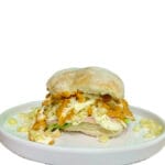 1 bolillo, 1 porción chica de esquite preparado, queso de hebra, jamón, aguacate, lechuga.